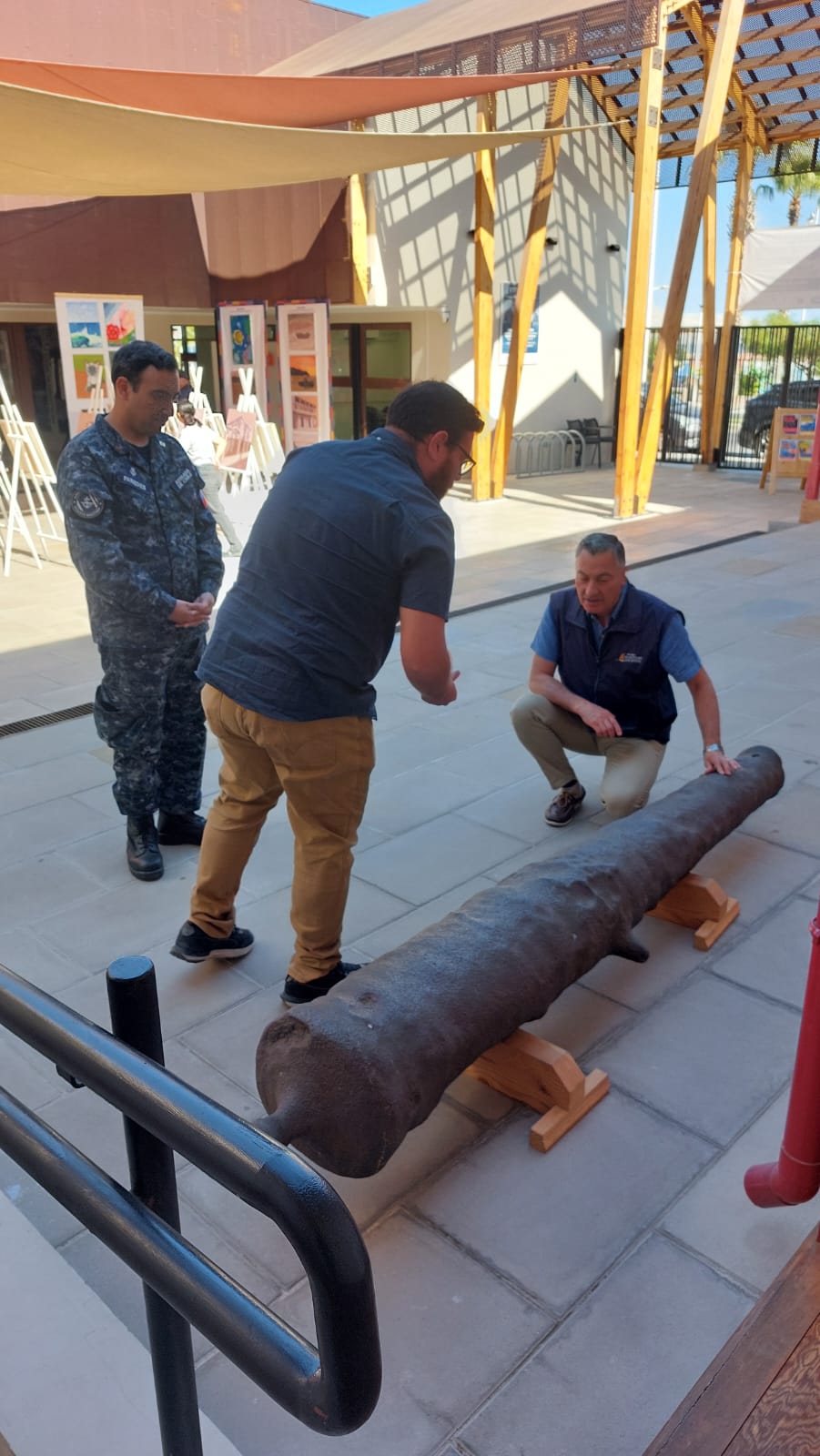 La visita se enmarcó en la continuidad y proyección de la muestra “Angamos, Clave de la Victoria”, actualmente exhibida en el Museo Municipal de Mejillones “Raúl Mavrakis Morales”, exposición desarrollada y montada por el Museo Marítimo Nacional. En este contexto, se llevaron a cabo actividades de mediación cultural, entrevistas y la grabación de breves cápsulas y podcasts junto al encargado del museo local y su equipo, con el objetivo de motivar a turistas y visitantes a conocer esta relevante muestra histórica.