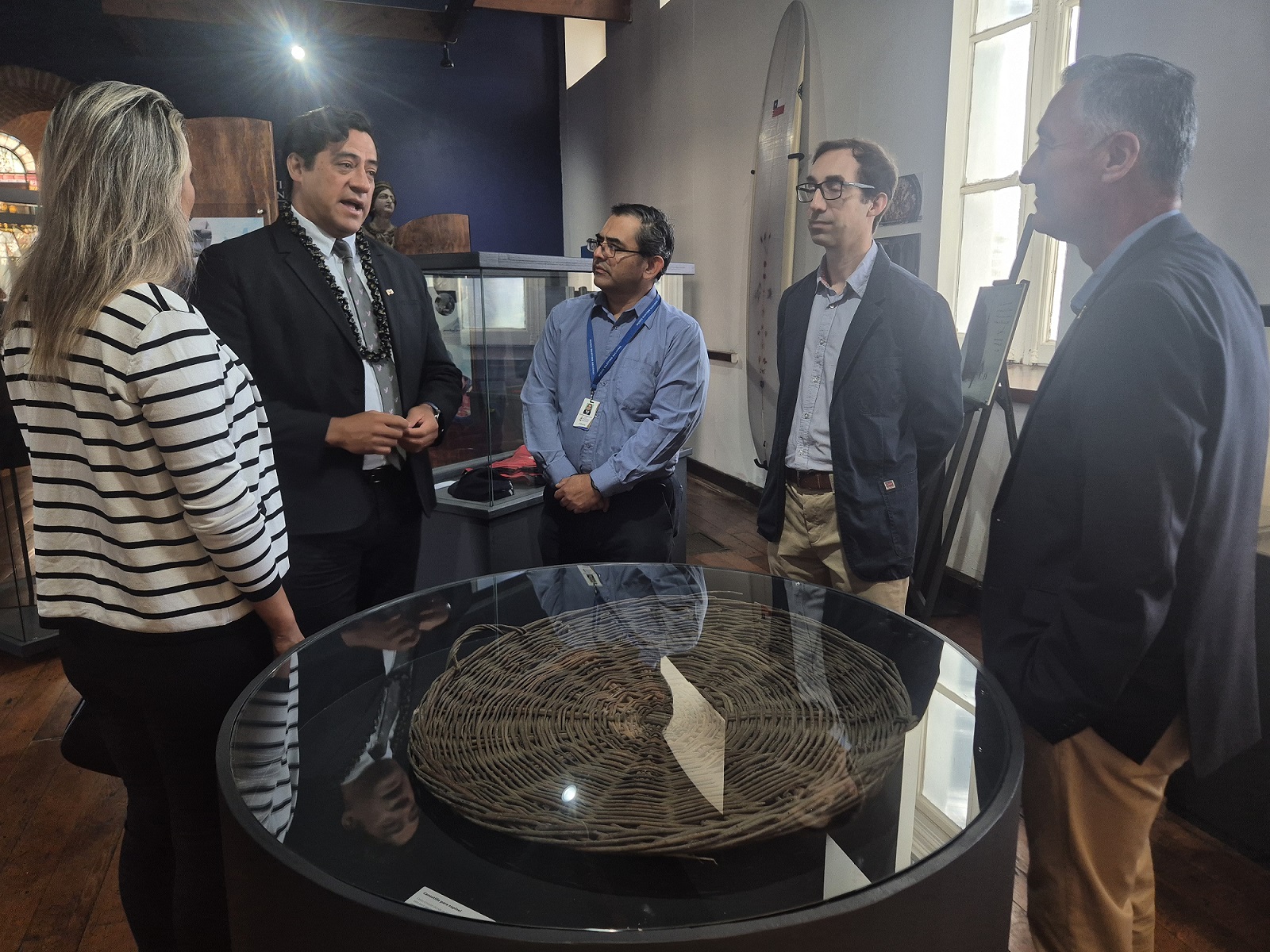 El lanzamiento de esta exposición, realizada el viernes 06 de marzo, contó con la presencia del director del Museo Marítimo Nacional, contraalmirante Andrés Rodrigo, del diputado Hotuiti Teao Drago y de Rangi Moana Gabriela Tepano Zúñiga, primera mujer rapanui oficial de la Marina Mercante Nacional, una de las protagonistas de la muestra.